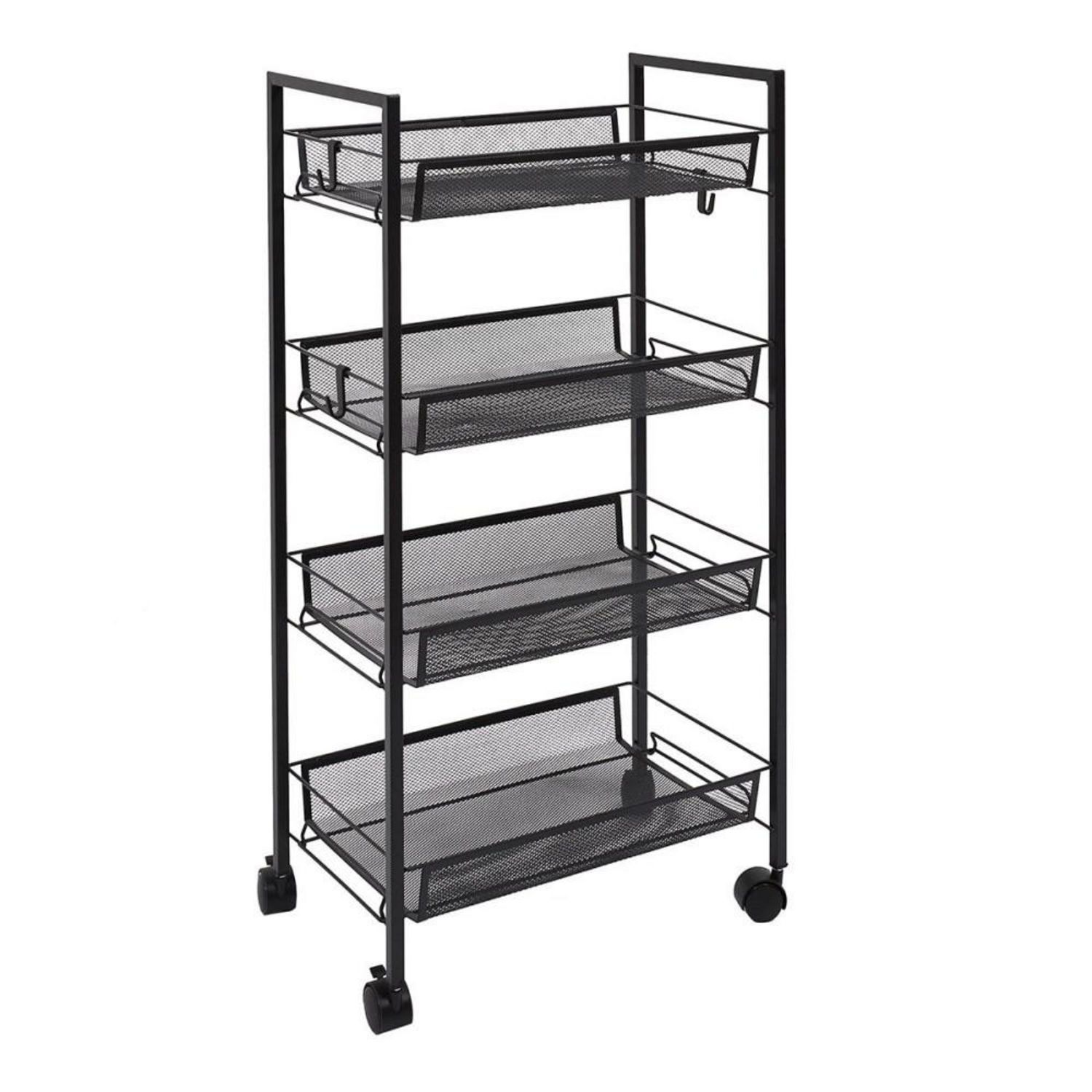 Desserte à roulettes 4 niveauxA la recherche d'un rangement nomade dans la cuisine ou le salon ? Optez pour la desserte en métal filaire à roulettes noire afin de créer une décoration moderne et intelligente. Idéale pour servir et desservir votre table ou comme meuble d'appoint, cette desserte 4 niv