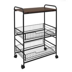 Desserte à roulettes étagère 2 tiroirsA la recherche d'un rangement nomade dans la cuisine ou le salon ? Optez pour la desserte en métal filaire à roulettes noire afin de créer une décoration moderne et intelligente. Idéale pour servir et desservir votre table ou comme meuble d'appoint, cette desserte étagère 2 tiroirs répondra à tous vos besoins.Informations sur la desserte à roulettes étagère 2 tiroirs :Dimensions : L. 60 x P. 36 x H. 86 cmMatière : métal, boisPoids : 6,7 kgA monter soi-même