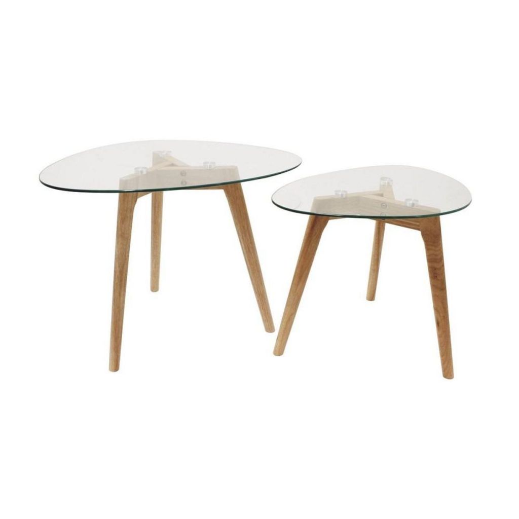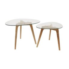 Ces tables gigognes en verre trempé Galet apporteront un plus indéniable à votre décoration contemporaine. Avec leur plateau en verre trempé en forme de galet et leur piétement en bois d'hévéa, ces tables gigognes seront gage de qualité et alte.Description de l'ensemble de 2 tables gigognes Galet :D