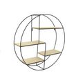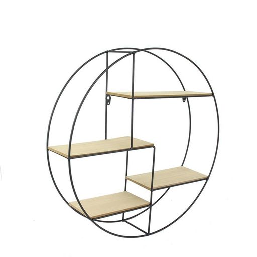 Rangez toutes vos petites affaires sur cette jolie étagère ronde en métal et bois. Totalement dans les standards déco du moment, sa structure métallique longiligne géométrique fera effet sur votre mur.Information sur l'étagère bois et métal ronde :Dimensions : 50 x 50 x 12 cmPoids : 1,3 kgMatière: m
