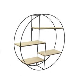 Rangez toutes vos petites affaires sur cette jolie étagère ronde en métal et bois. Totalement dans les standards déco du moment, sa structure métallique longiligne géométrique fera effet sur votre mur.Information sur l'étagère bois et métal ronde :Dimensions : 50 x 50 x 12 cmPoids : 1,3 kgMatière: métal, boisNe pas excéder 3 kg au totalVisserie non incluse