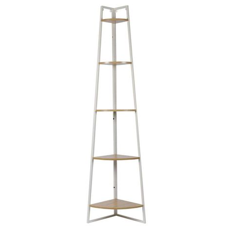 En métal et effet bois, cette étagère d'angle occupera agréablement le coin de votre salon. Ses cinq niveaux vous permettront de décorer votre intérieur en accueillant vos petits objets de décoration.