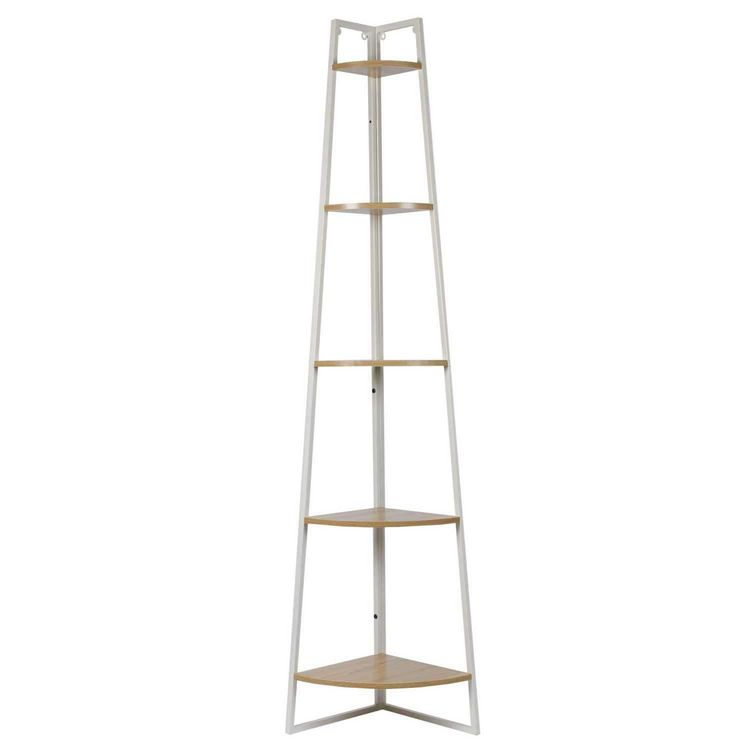 Etagère d'angle 5 niveaux en bois et métal EDISON - Blanc et marron