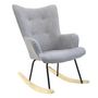 Le charme et le confort du fauteuil Helsinki à bascule vont vous faire craquer ! Profitez d'une pause détente bien méritée au coin du feu.FICHE TECHNIQUE- Structure en bois.- Revêtement en polyester.- Rembourrage en mousse.- Pieds en métal.CARACTERISTIQUES TECHNIQUES- Dimensions : L. 65 x l. 80 x H.
