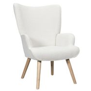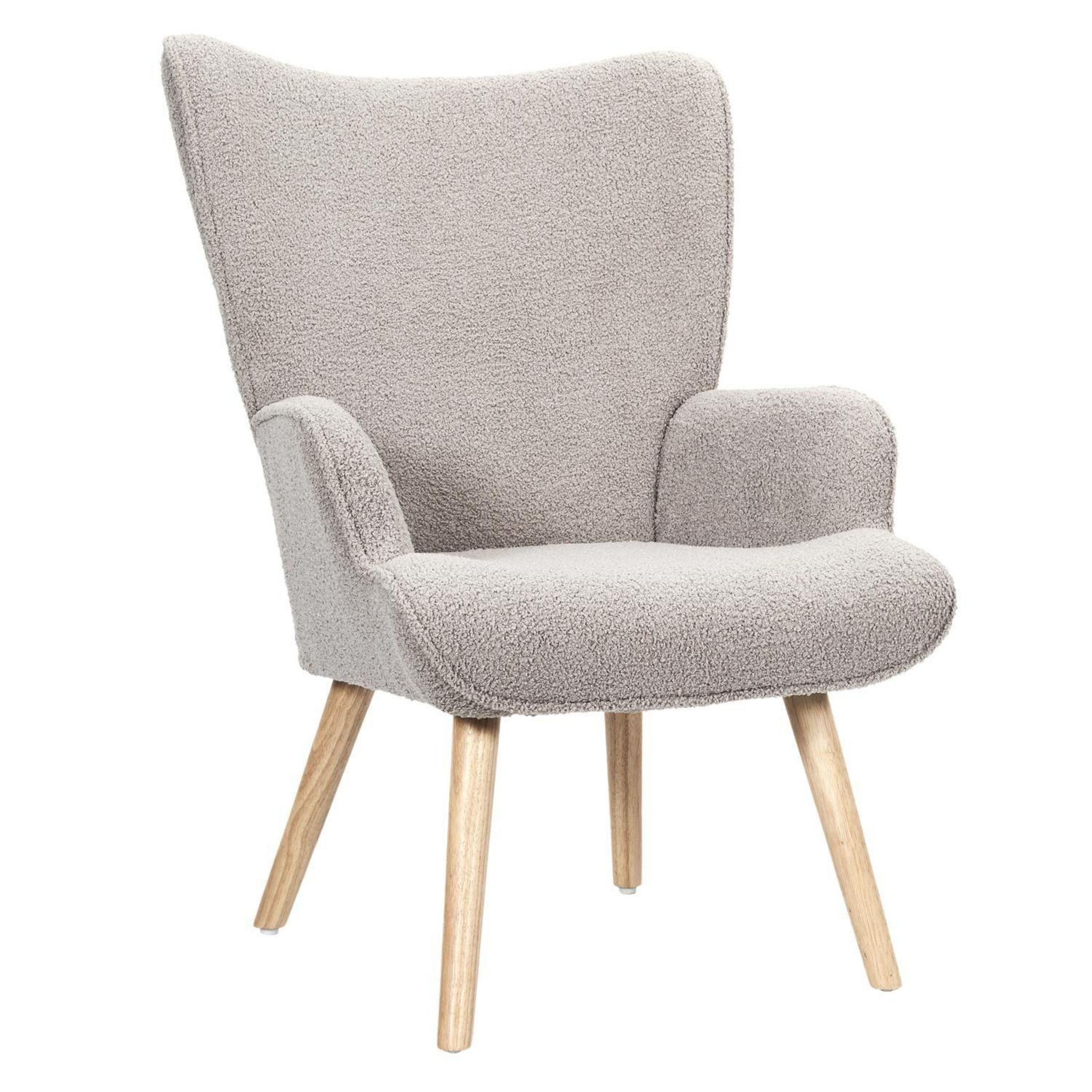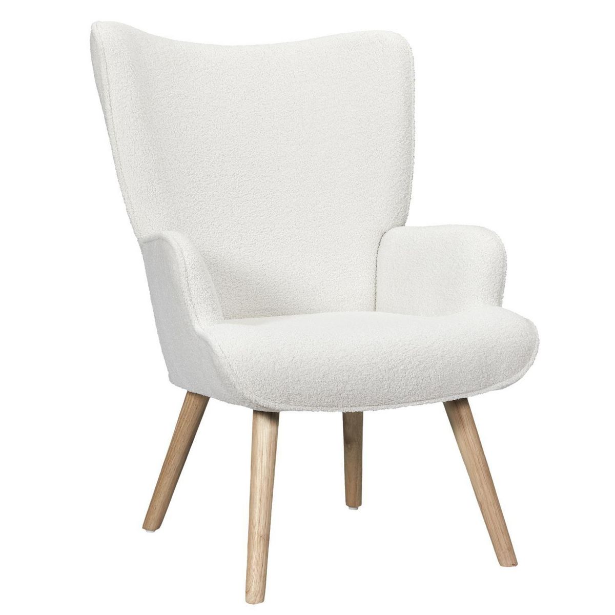 Le fauteuil de salon Bouclette Rhea apportera une touche chaleureuse et cocooning à votre intérieur. Son revêtement en bouclette ultradoux et ses pieds en bois clair offrent à la fois confort et élégance. Un siège parfait pour se détendre et ajouter du style à votre décoration.