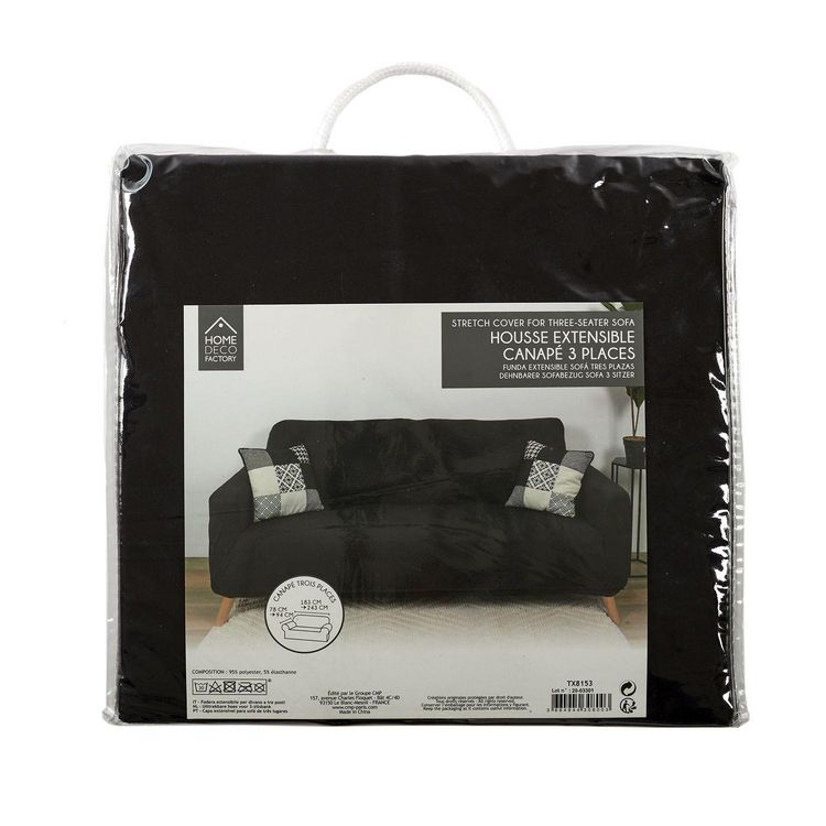 Housse extensible pour canapé 3 places - Noir - 230 x 85 cm