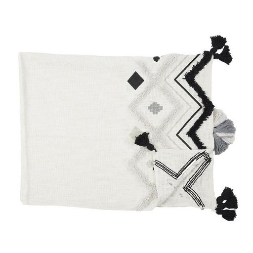 Jeté de canapé ethnique tufté noir 130x150 cm