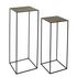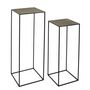 Lot de 2 sellettes gigognes métal martelé MirageCes sellettes gigognes en métal martelé Mirage habilleront vos salles de vie d'une grande élégance contemporaine, en y apportant de la praticité.Idéale dans une entrée, ces sellettes seront parfaites pour accueillir de petits objets décoratifs.Description de le lot de 2 sellettes métal martelé Mirage :Dimensions grande : L. 34 x P. 34 x H. 90 cmDimensions petite : L. 30 x P. 30 x H. 75 cmComposition : ferPoids : 3,2 kg