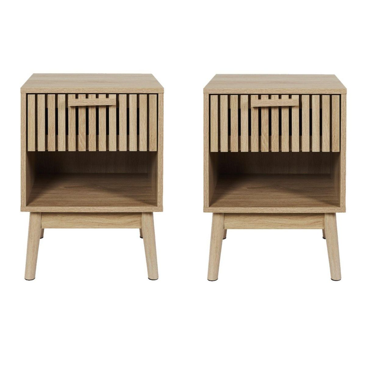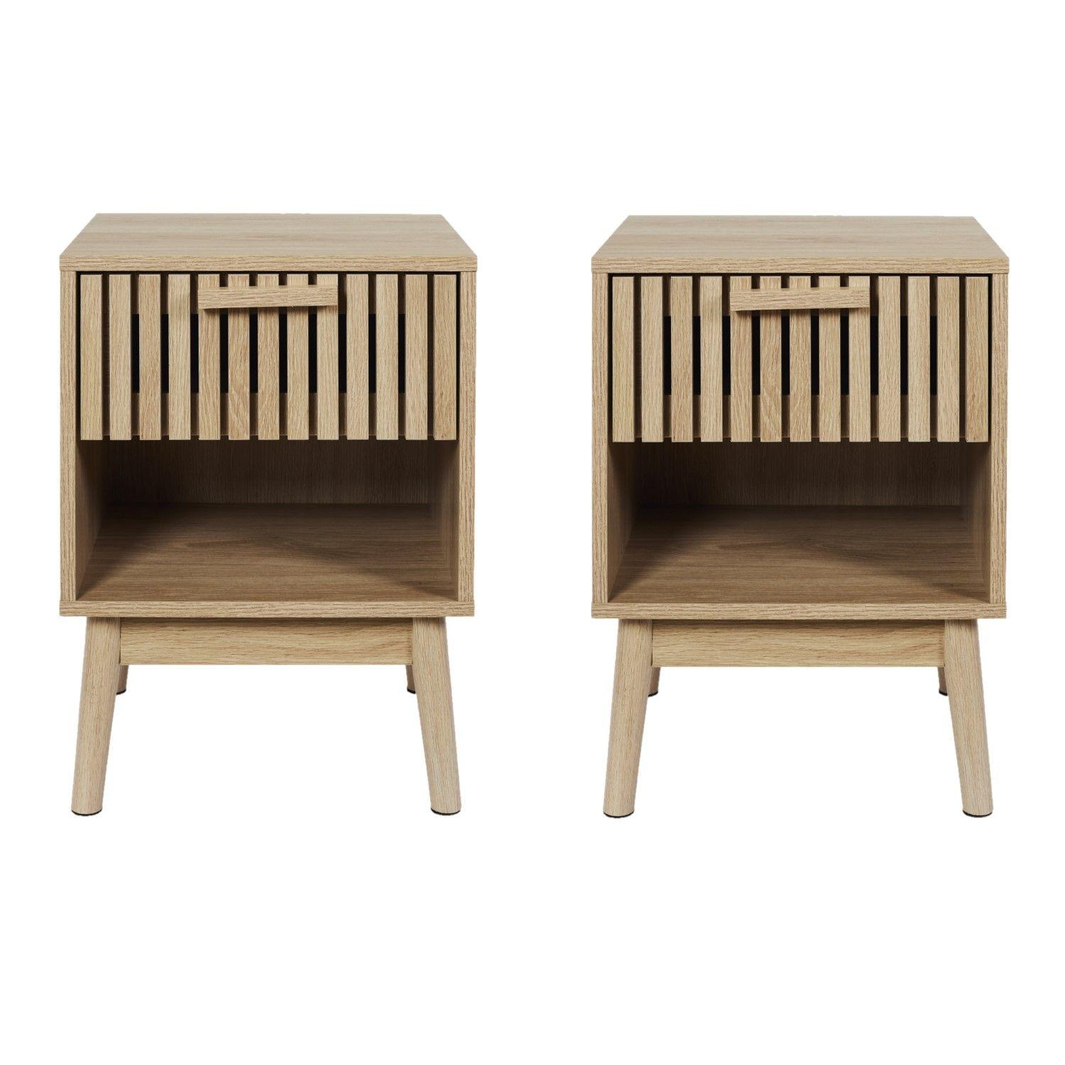 Ces tables de chevet Saulk ultra-design sont un excellent choix pour rehausser la décoration de votre chambre à coucher. Vous apprécierez leur tiroir et leur niche pour ranger astucieusement vos effets personnels, livres et autres objets.