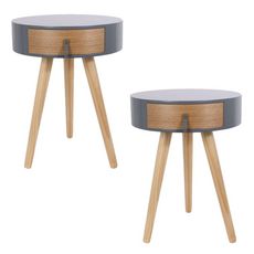 Modernisez la décoration de votre chambre à coucher avec ces magnifiques tables de chevet en bois ! Vous aimerez tout chez elles, leur plateau rond agrémenté d'un tiroir, le positionnement triangulaire de leurs 3 pieds ou encore la qualité de leur finition.