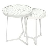 Ces 2 tables gigognes habilleront vos salles de vie d'une grande élégance ! - Composition : MDF - Dimensions : 50/45cmFICHE TECHNIQUE- Table d'appoint motif feuillage- Plateau en verre- Couleur : Noir- Matière principale : MDFCARACTERISTIQUES TECHNIQUES- Dimensions du petit modèle : Diam 35 x 48 cm