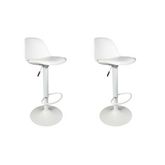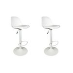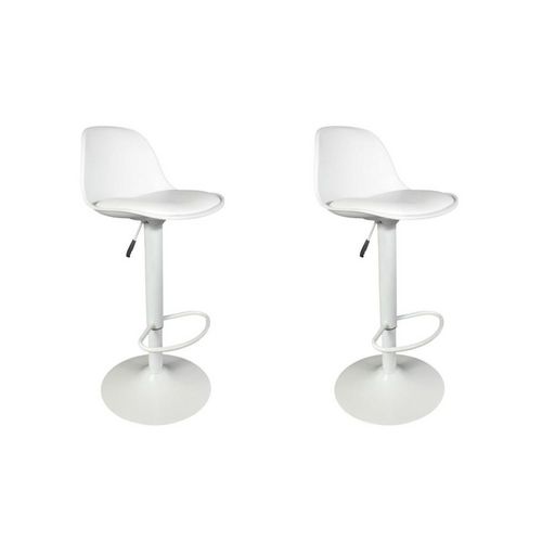 Créez une atmosphère moderne dans votre salle à manger avec ce lot de 2 chaises de bar coloris blanc! Installez les dans votre bar ou votre cuisine et offrez vous un espace design! Pratique leur pied est réglable. Vendu en lot de 2 tabouretsDimensions : L. 38 x P. 41.5 x H. 104 cmHauteur d'assise : 83 cmComposition : plastique et métalPoids supporté par tabouret: 110KgA monter soi-même