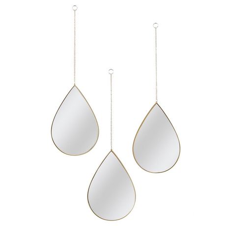 Lot de 3 miroirs gouttes 19,1x27,2cm - Doré