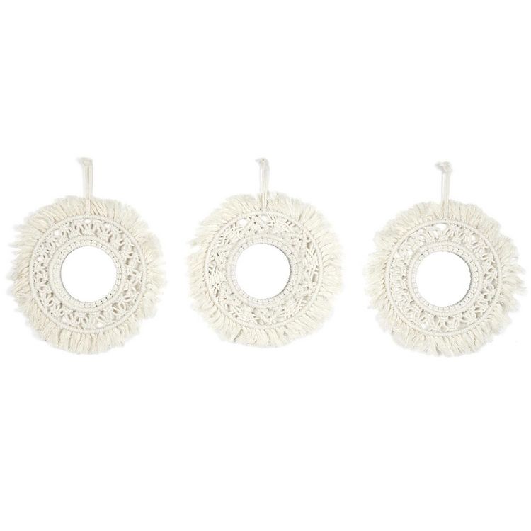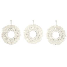 Découvrez le charme bohème de notre lot de 3 miroirs ronds beige. Chaque miroir est orné d'un délicat travail de macramé qui ajoute une texture unique à vos murs. Révélez votre amour pour le style bohème en dispersant ces miroirs individuellement pour une touche subtile, ou regroupez-les pour un imp