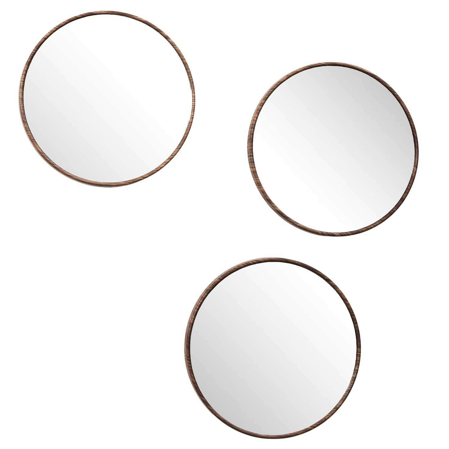Lot de 3 miroirs ronds imitation bois - Diam 26 cm - Marron