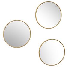 Partenaire incontournable de la maison, ce lot de 3 miroirs TORONTO doré de 26 cm de diamètre est l'accessoire déco tendance qu'il vous manquait. Que ce soit pour la simple décoration ou pour leur utilité, ces miroirs ronds ajouteront une touche chic à votre intérieur.Information sur le lot de 3 mir