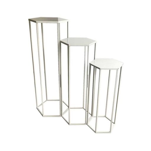 Lot de 3 sellettes gigognes métal blancCes sellettes gigognes en métal blanc habilleront vos salles de vie d'une grande élégance contemporaine, en y apportant de la praticité.Idéale dans une entrée, ces sellettes seront parfaites pour accueillir de petits objets décoratifs.Description de le lot de 3