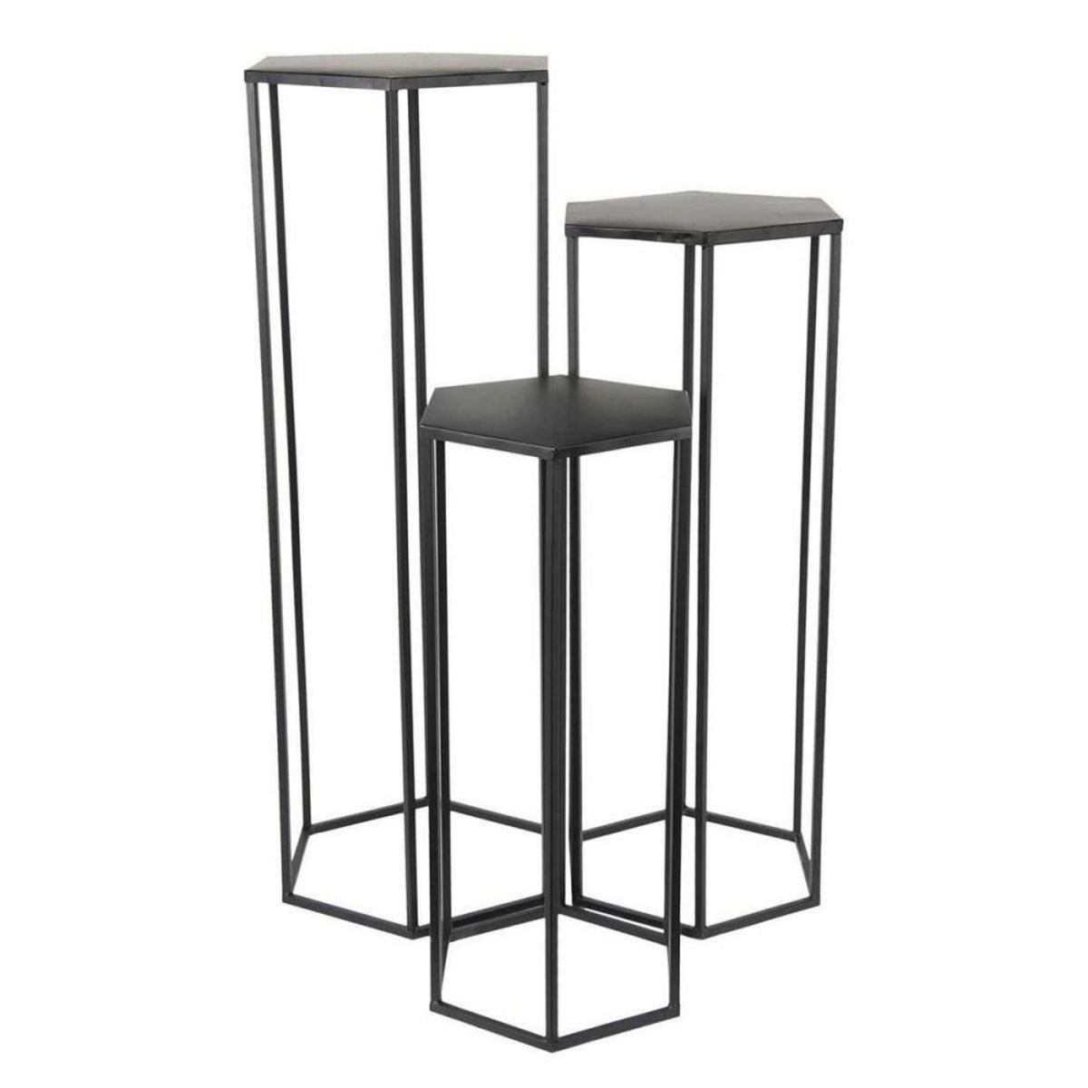 Lot de 3 sellettes gigognes métal noirCes sellettes gigognes en métal noir habilleront vos salles de vie d'une grande élégance contemporaine, en y apportant de la praticité.Idéale dans une entrée, ces sellettes seront parfaites pour accueillir de petits objets décoratifs.Description de le lot de 3 s