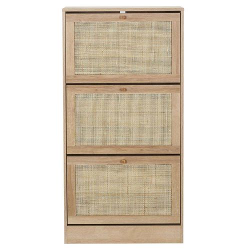 Meuble à chaussures 3 portes Bali en cannage - Marron