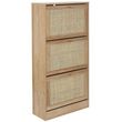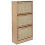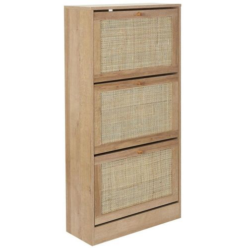 Ajoutez une note élégante et pratique à votre intérieur grâce à ce meuble à chaussures 3 portes Bali au design moderne bohème imparable. Muni de 3 portes basculantes, il permet de stocker vos paires de chaussures avec style.Informations sur le meuble à chaussures 3 portes Bali :Structure en panneau de particules, rotin et papierDimensions : L. 60 x P. 24 x H. 113 cmPoids : 18 kgA monter soi-mêmeMatériel et notice inclus