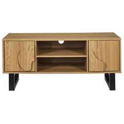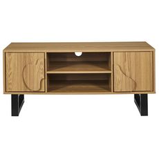 Apportez une touche moderne et fonctionnelle à votre salon avec le meuble TV 2 portes et 2 niches CALYPSO. Avec son design épuré et sa forme rectangulaire, il s'intègre parfaitement dans n'importe quel intérieur contemporain. Sa structure en bois et ses pieds en fer lui confèrent une belle stabilité et une élégance discrète. Les deux portes et deux niches de rangement offrent un espace pratique pour organiser vos appareils multimédia, télécommandes, livres ou objets déco. Un meuble aussi esthétique que fonctionnel pour un salon bien agencé.