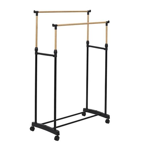 Ce portant à vêtements double à roulettes vous permettra de ranger vos vêtements avec efficacité. Avec ses 2 barres réglables en hauteur vous pourrez ranger bon nombre de vos vêtements avec style!Informations sur le portant double à roulettes effet bois :Couleur : noir, imitation boisDimension : L. 80 x P. 43 x H. 160 cm (réglable de 90 à 160cm)Poids : 1,4 kgcharge maximale 10 kgMatière : métal, plastiqueA monter soi-même