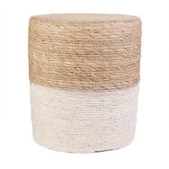 Pouf tressé en jonc Blue Lagoon - Diam. 35 cm - Blanc