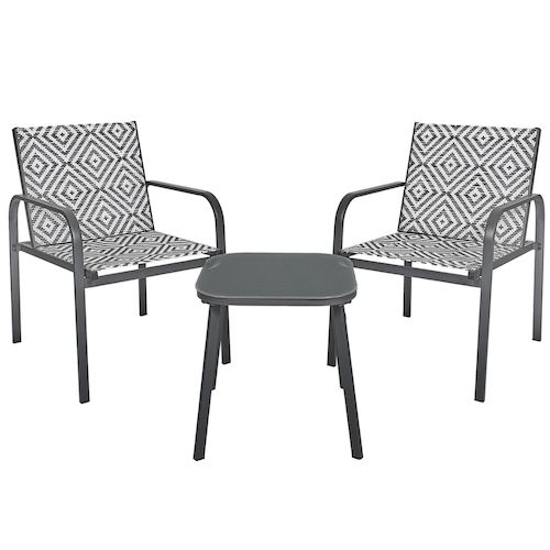 Le salon de jardin Mexico est conçu pour créer un espace convivial en extérieur. Adapté pour deux personnes, il dispose d'une structure en acier assurant solidité et durabilité. L'assise en textile offre un confort optimal pour les moments de détente. Son format compact permet une installation facil