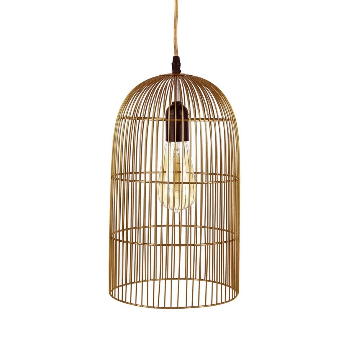 Apportez un brin d'exotisme dans votre intérieur avec cette suspension cage haute. Son charme réchauffera l'ambiance tout en offrant une déco 100% tendance !FICHE TECHNIQUE- Suspension en métal.- Fonctionne avec une alimentation sur secteur.- Ampoule non incluse.CARACTERISTIQUES TECHNIQUES- Dimensio