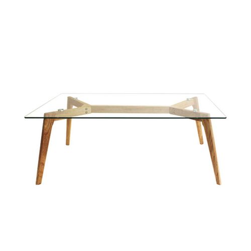 Cette élégante table basse rectangulaire réalisée en verre et en bois s'intégrera à merveille dans tous les styles de décorations. Son verre transparent laisse percevoir un travail de qualité ainsi que 4 magnifiques pieds qui ne manqueront pas de vous séduire. N'attendez plus, modernisez et épurez votre déco !
