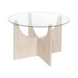 Table basse ronde effet travertin et verre PIETRA - Beige