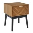 Ajoutez du caractère à votre chambre avec la table de chevet Felix. Sa structure en bois effet chevron apporte une touche chaleureuse, tandis que les pieds noirs lui confèrent un style tendance. Avec son tiroir, cette table de chevet vous permet de ranger facilement vos petits objets et autres accessoires comme des livres, des lunettes ou votre téléphone. Fonctionnelle, elle est facile à intégrer dans toutes les chambres, apportant à la fois praticité et style.