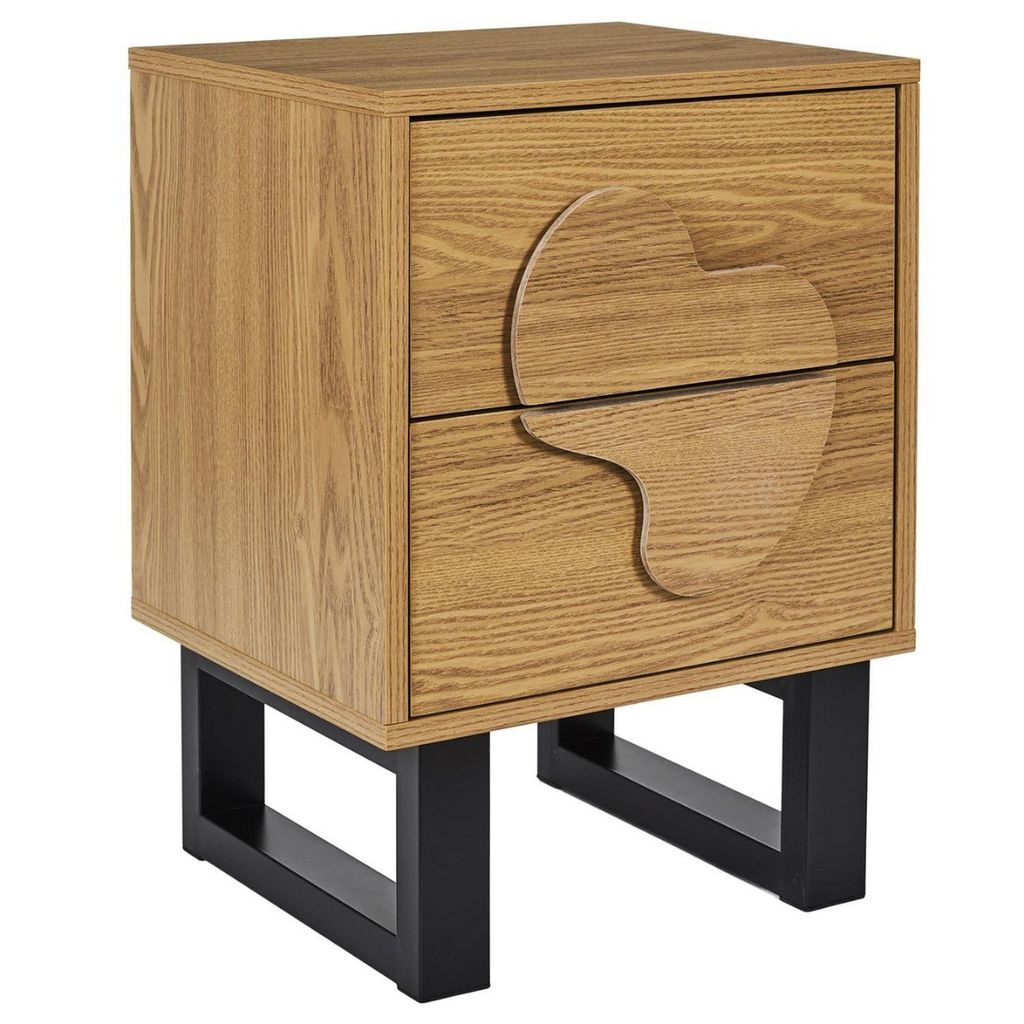 La table de chevet Calypso facilite l'organisation de l'espace nuit grâce à ses deux tiroirs offrant un rangement discret pour les objets du quotidien. Son format compact permet une intégration facile dans différentes configurations de chambre. Sa structure en fibres de bois assure solidité et stabi