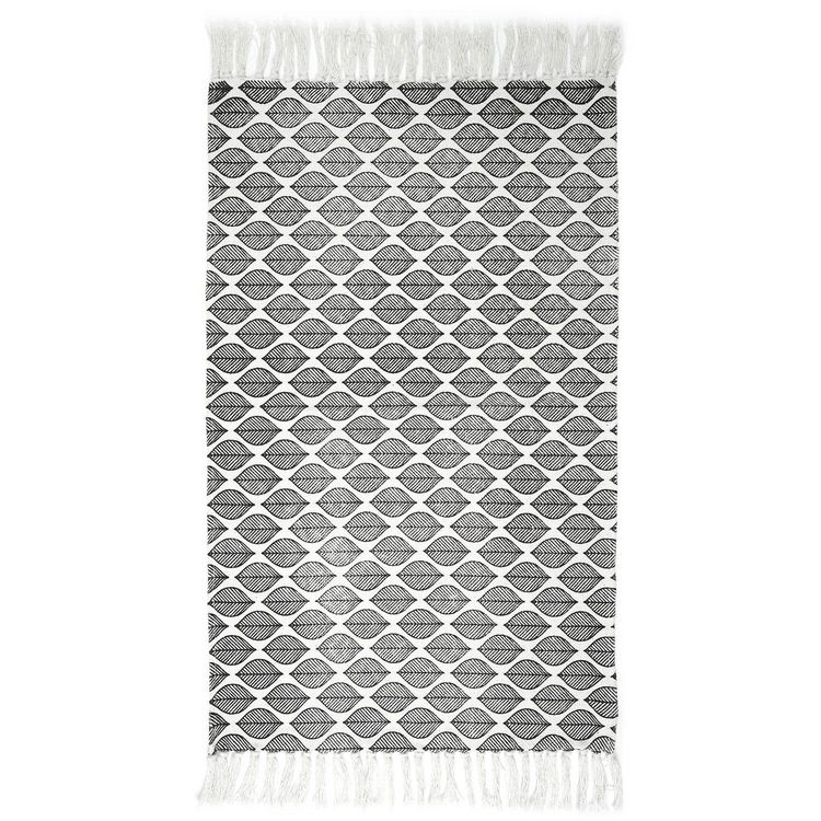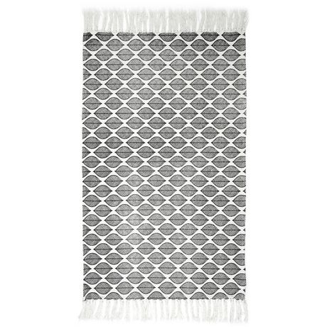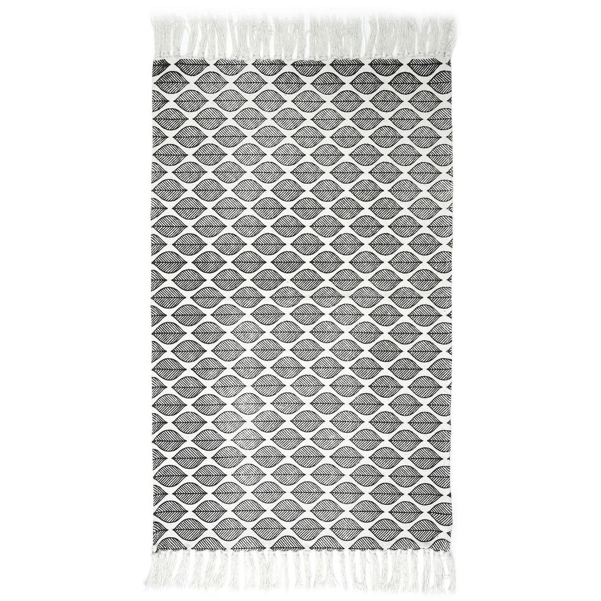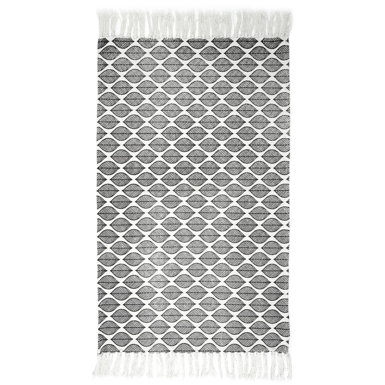 Tapis à frange modèle Zeste - Noir et Blanc - 50 x 80 cm