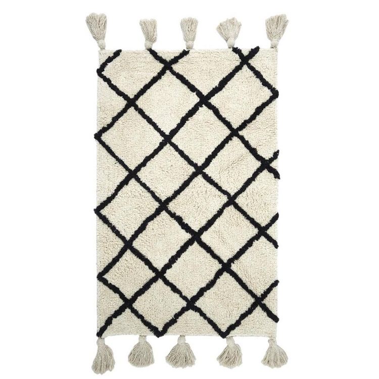 Tapis berbère pompons 50x80 cotonTrès joli tapis rectangle berbère de dimensions 50x80 cm tout en coton. Pour améliorer votre déco dans un style ethnique très tendance, adoptez immédiatement cet élégant tapis berbère en coton.Informations sur le tapis berbère pompons 50x80 coton :Couleurs : blanc et