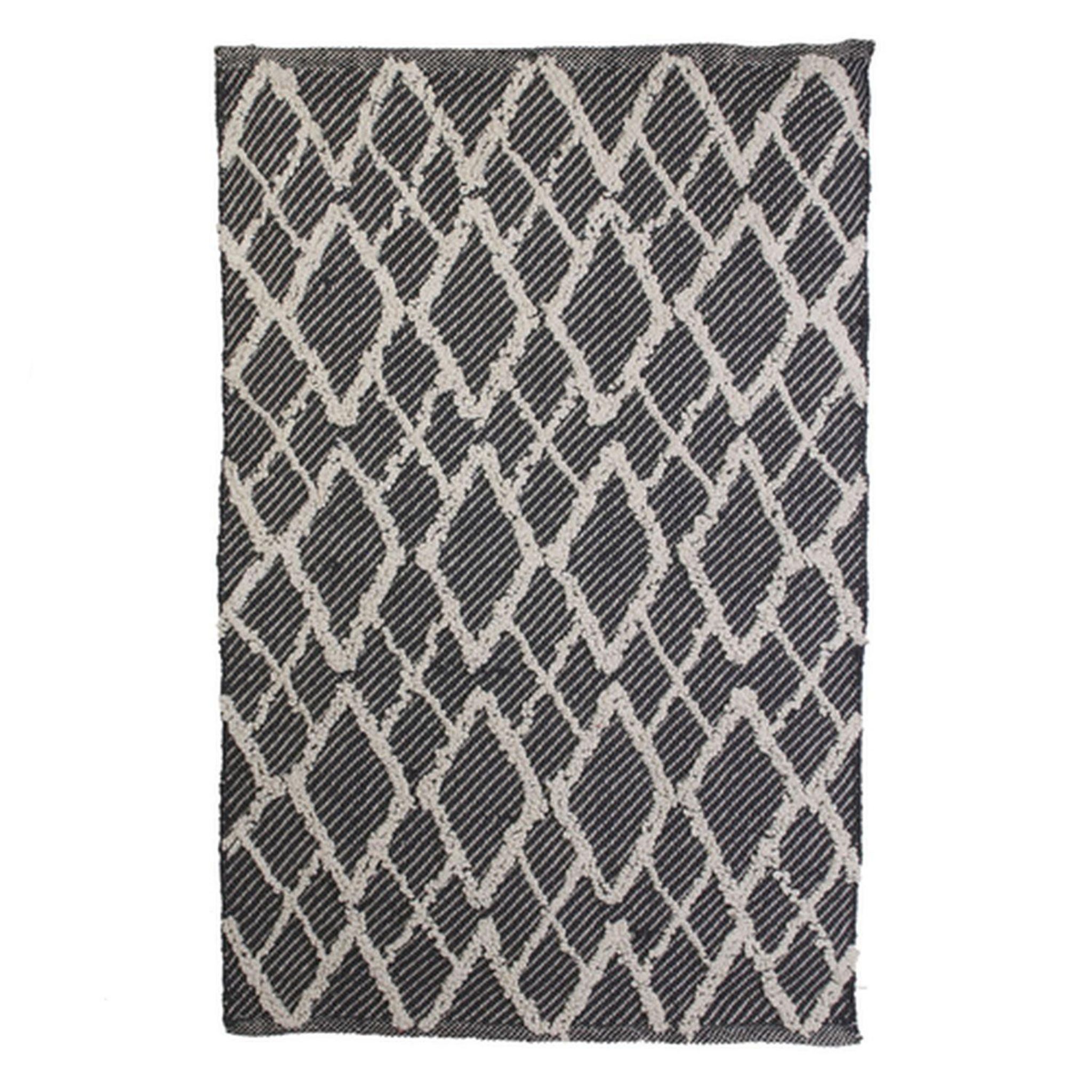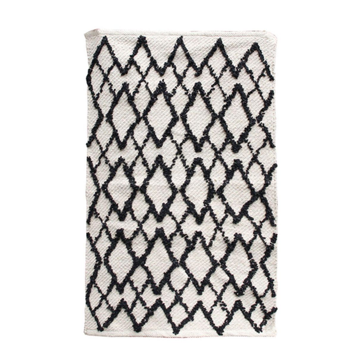 Vous aimerez les reliefs en losange de ce beau tapis d'inspiration berbère.FICHE TECHNIQUE- Tapis en coton et polyester.- On aime ses reliefs en forme de losange.CARACTERISTIQUES TECHNIQUES- Dimensions : L. 60 x l. 90 x H. 1 cm.- Poids : 0,97 kg.
