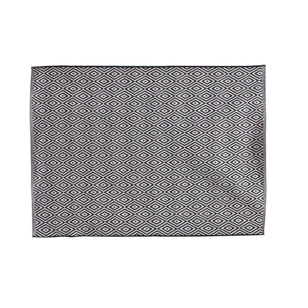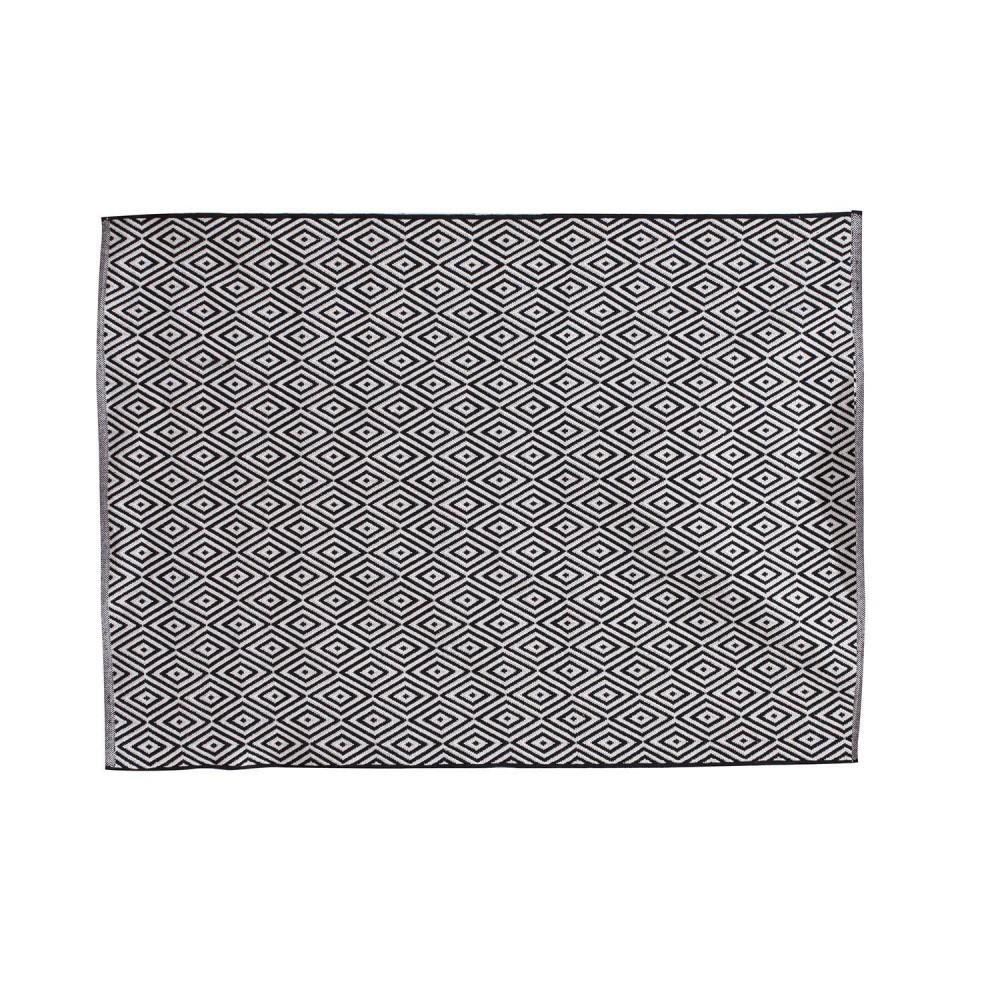 Tapis rectangle losanges noir blanc 120x170 cmChangez de décoration avec ce grand tapis rectangle losanges noir blanc de dimensions 120 x 170 cm au dessin où se mêlent géométrique et ethnique d'une façon très élégante. Sa matière 90% coton 10% polyester vous garantira une durabilité dans le temps et