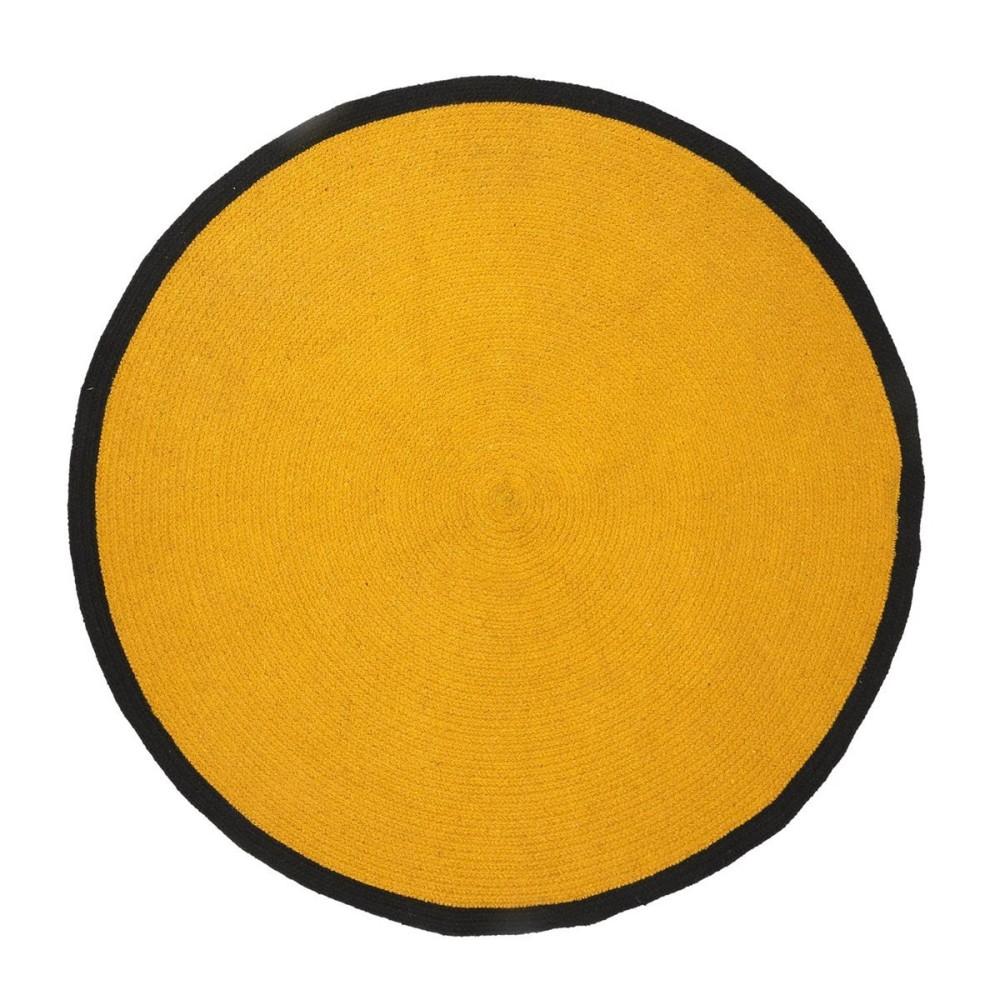 Tapis rond moutarde bord noir D120 coton