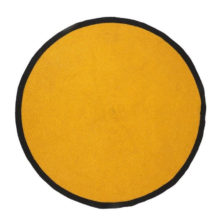 Tapis rond moutarde bord noir D120 cotonMagnifique tapis rond en coton moutarde à bord noir de 120 cm de diamètre. Vous aimerez le caractère couleur unie très pop de ce tapis en fibre naturelle. Son format circulaire modernisera la déco de votre espace.Informations sur le tapis rond moutarde bord no