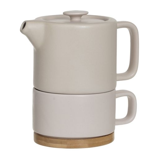 Un kit théière + tasse aussi joli que bien conçu ! Une théière pour 1 personne (contenance 0,4 l) qui s'encastre dans sa tasse : un minimum d'encombrement pour un maximum de plaisir ! En faïence.