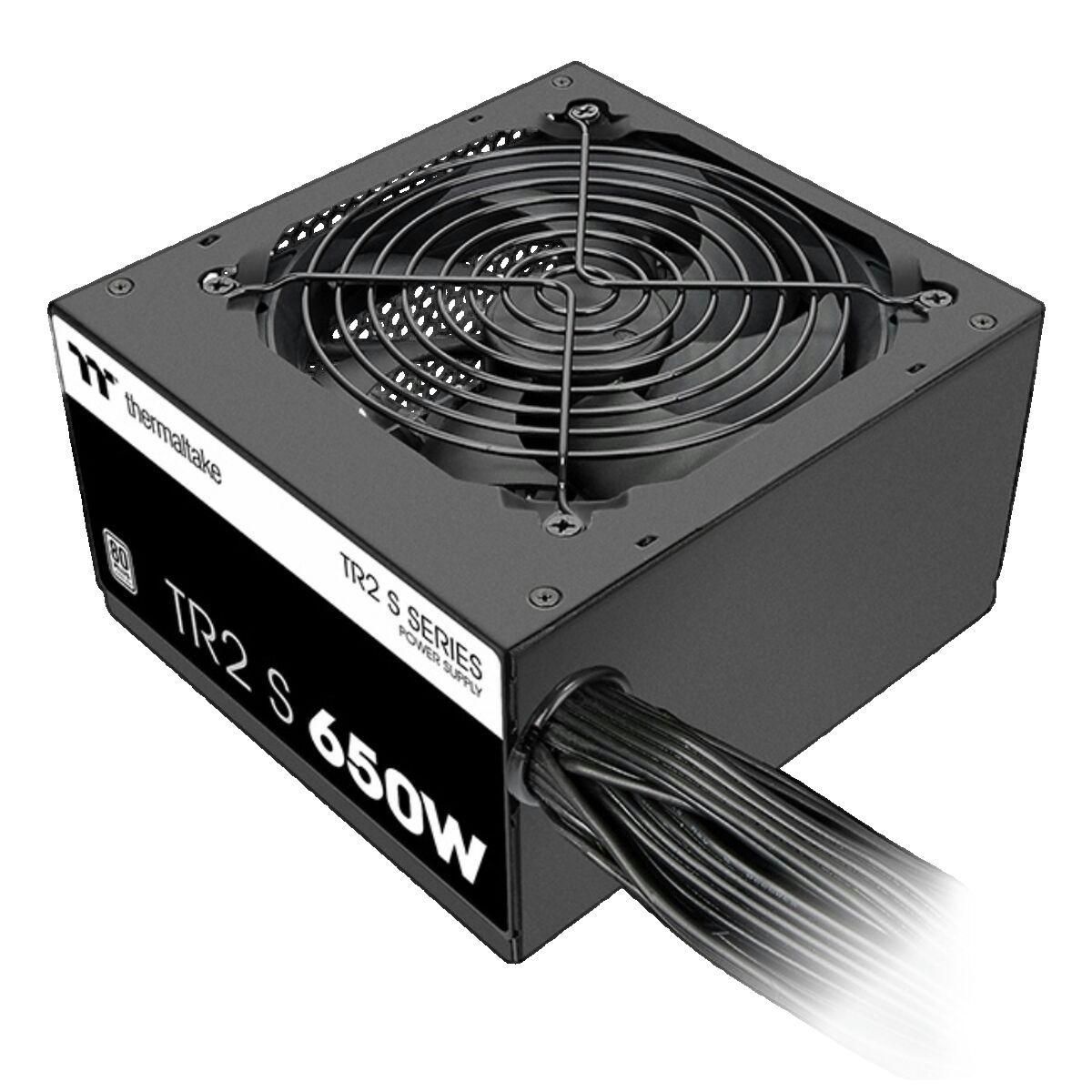 L'alimentation Thermaltake PS-TRS-0650NNSAWE-2 fournit une puissance stable de 650 W, idéale pour les ordinateurs de bureau. Elle est dotée d'un connecteur 20+4 pin ATX, d'une certification 80 PLUS garantissant une efficacité énergétique élevée, ainsi que d'un ventilateur de 12 cm pour un refroidiss