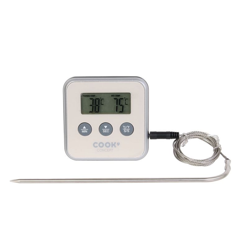 Ce thermomètre minuteur de cuisson à sonde en inox est l'outil idéal pour vous assurer une parfaite maîtrise de vos cuissons. Le modèle possède un boîtier magnétique qui s'aimante pour rester à portée de main en cuisine. Testez-le sans plus attendre, vous ne manquerez plus vos cuissons de viandes, foie gras, nappages, sirops... Mode d'emploi inclus. Fonctionne avec 1 pile LR03 AAA non incluse.