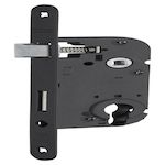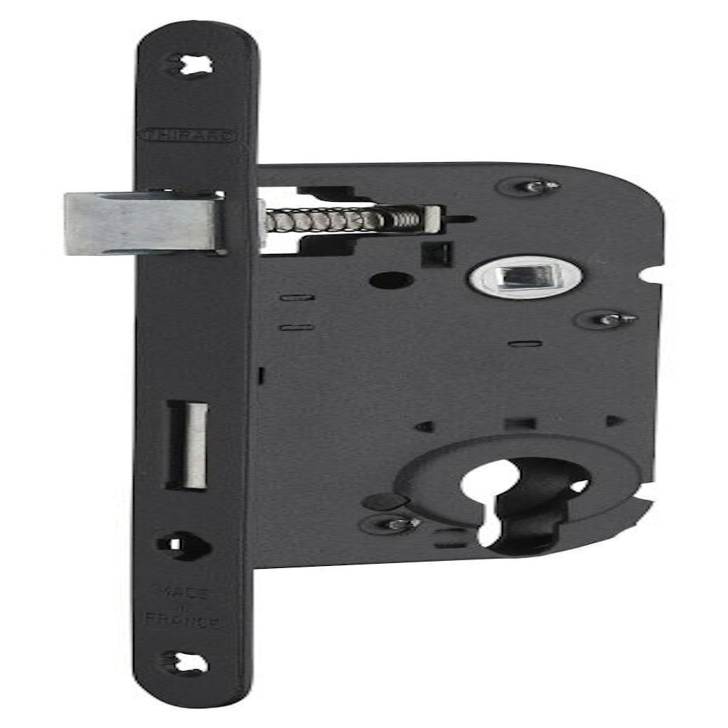 Serrure à encastrer réversible axe 40x70mm avec trou de cylindre, finition noir