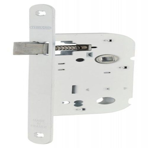 Serrure à encastrer réversible axe 40x70mm bec de cane, finition blanc