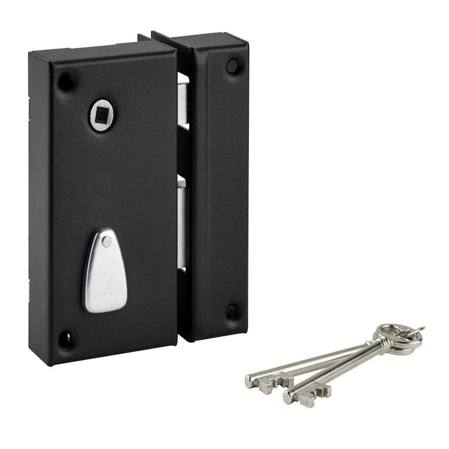 Destination : Pour porte d'entréeForme de la serrure : VerticalOuverture de la porte : A droiteOuverture de la serrure par : PoignéeCouleur : NoirMatière du coffre : AcierType de clé : Clé à gorgesNombre de clés : 2Accessoires fournis : Vis de fixationHauteur de la gâche (en mm) : 130Largeur de la g