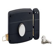 Serrure de garage en applique, horizontale à bouton, sens droit, noir THIRARD