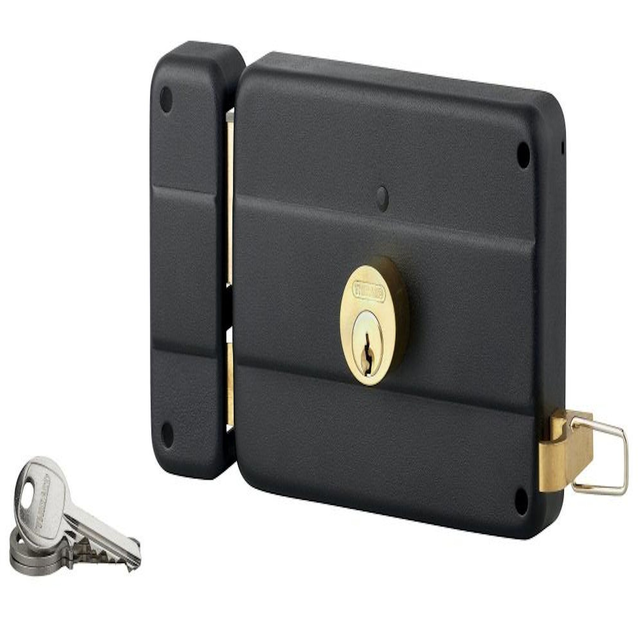 Destination : Pour porte d'entréeForme de la serrure : HorizontalOuverture de la porte : A gaucheOuverture de la serrure par : TirageCouleur : NoirMatière du coffre : AcierType de clé : Clé crantéeNombre de clés : 3Accessoires fournis : Vis de fixationHauteur de la gâche (en mm) : 90Largeur de la gâ