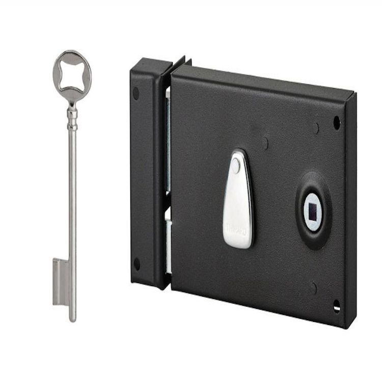Destination : Porte d'intérieurForme de la serrure : HorizontalOuverture de la porte : A gaucheOuverture de la serrure par : PoignéeCouleur : NoirMatière du coffre : AcierTraitement anticorrosion : NonType de clé : Clé à chiffreNombre de clés : 2Accessoires fournis : Vis de fixationHauteur de la gâc