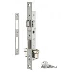 Serrure pour porte métallique. Coffre acier. Têtière inox. Demi-tour réversible sans démontage du coffre. Pêne alliage nickelé. Gâche plate inox. Carré 8 mm avec fourreau réducteur 7 mm. Entraxe 70 mm. Zingué. Livré avec cylindre standard nickelé 30 x 30 mm 5 goupilles, 3 clés panneton réduit.