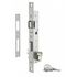 Serrure pour porte menuiserie métallique. Coffre acier. Têtière inox. Demi-tour réversible sans démontage du coffre. Pêne alliage nickelé. Gâche plate inox. Carré 8 mm avec fourreau réducteur 7 mm. Entraxe 70 mm. Zingué. Livré avec cylindre standard nickelé 30 x 30 mm 5 goupilles, 3 clés panneton ré